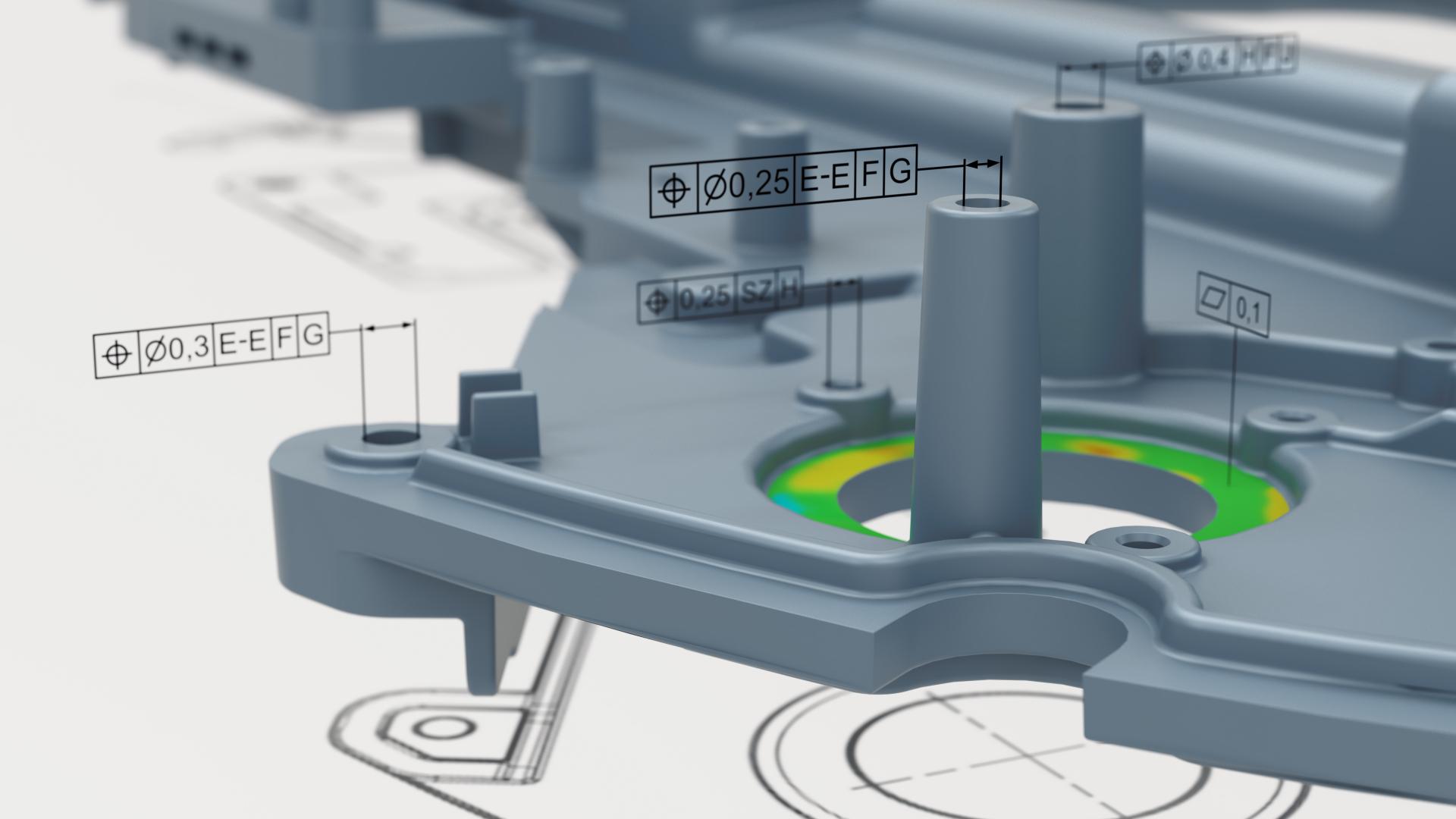 Use um mecanismo inteligente de GD&T baseado nos mais recentes padrões ASME e ISO, com recursos avançados de DRF, condições do material, modificadores de datums e zona de tolerância.